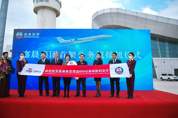 4月9日11時18分,嘉晨集團首架G650公務機平穩的降落在營口蘭旗機場,經歷了一年多的等待期盼,嘉晨人終于迎來了首架公務機的勝利交機。這意味著,嘉晨集團開創了營口民營企業購買公務機的先河,也是遼寧省首家選擇G650公務機的企業。這不僅是我們嘉晨集團的驕傲,同時也是全市人民的榮耀。