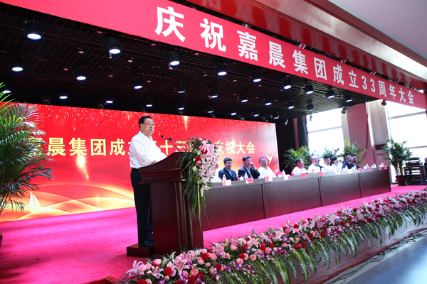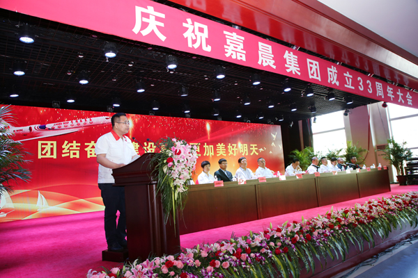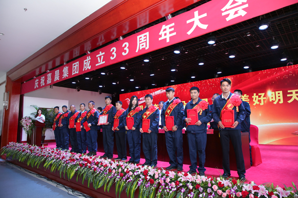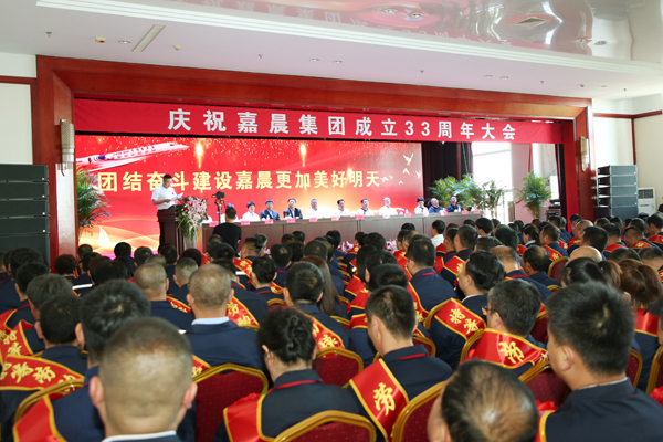 6月18日上午,嘉晨集團(tuán)中層以上領(lǐng)導(dǎo),部分勞模代表,集團(tuán)機(jī)關(guān)、各公司機(jī)關(guān)及部門負(fù)責(zé)同志,各廠廠長、車間主任、工段長、沈陽、大連等地辦事處負(fù)責(zé)同志,共計(jì)1000余人歡聚一堂,共同見證嘉晨集團(tuán)33年的輝煌歷程!集團(tuán)副董事長孫路新主持慶祝活動(dòng)。